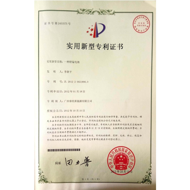 Column lithium manganese dioxide battery